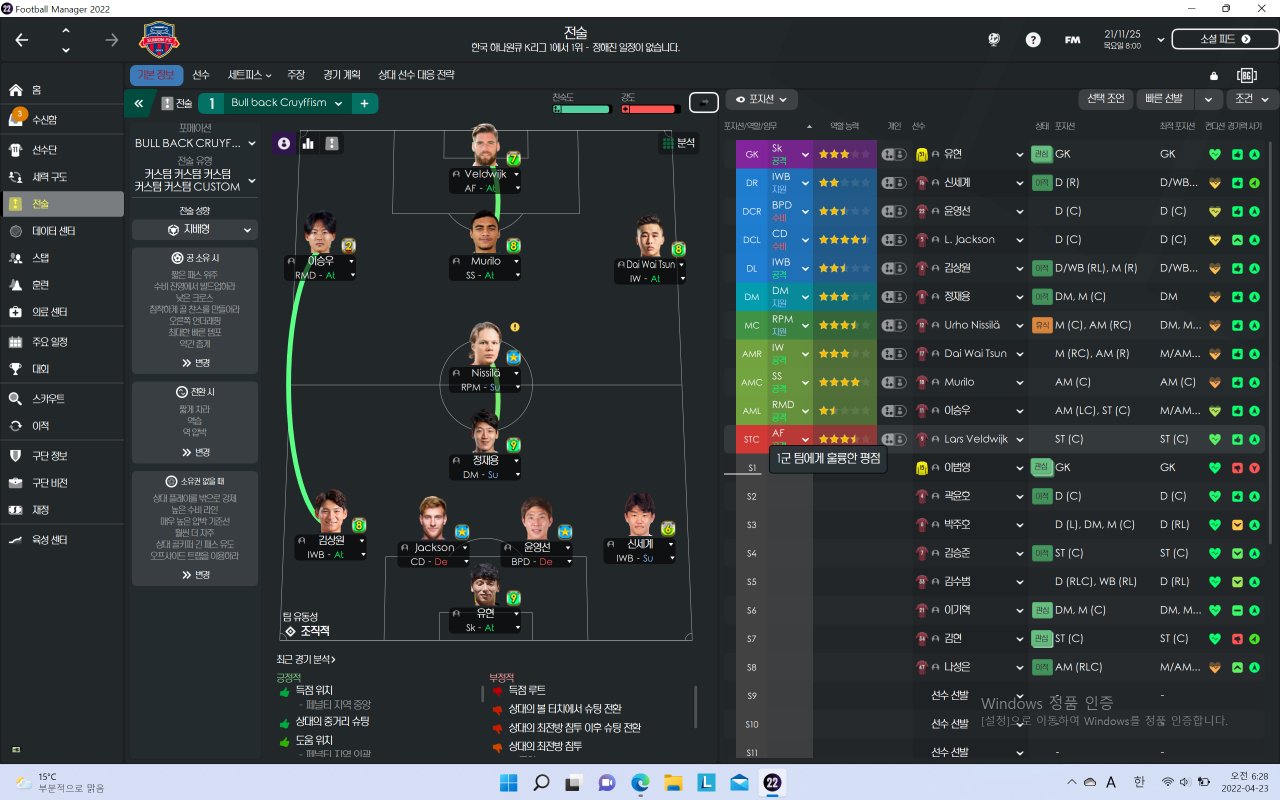 For build-up situations, build-up is performed in the form of Cruyff 3331.However, if there is a difference, the build-up will be carried out by making three triangles in the midfield with a inverted wingback in the form of 3331.Thanks to this, it compensated for weaknesses in the side and scored a lot.