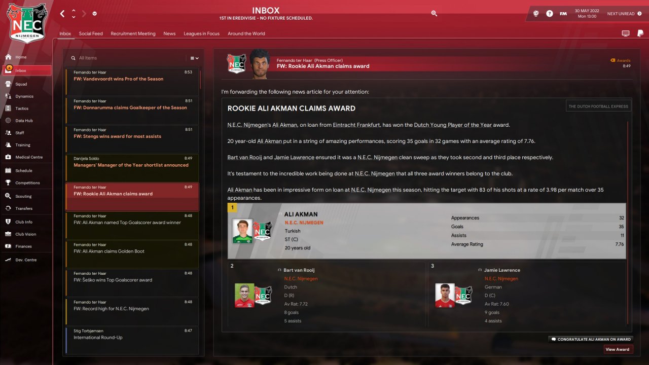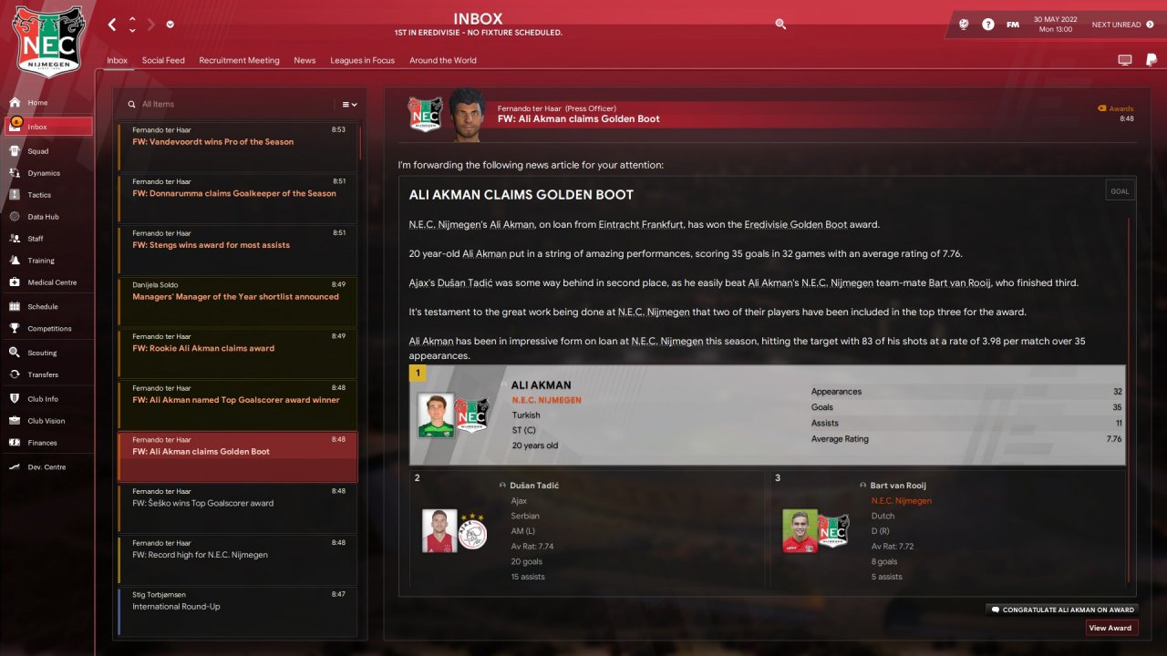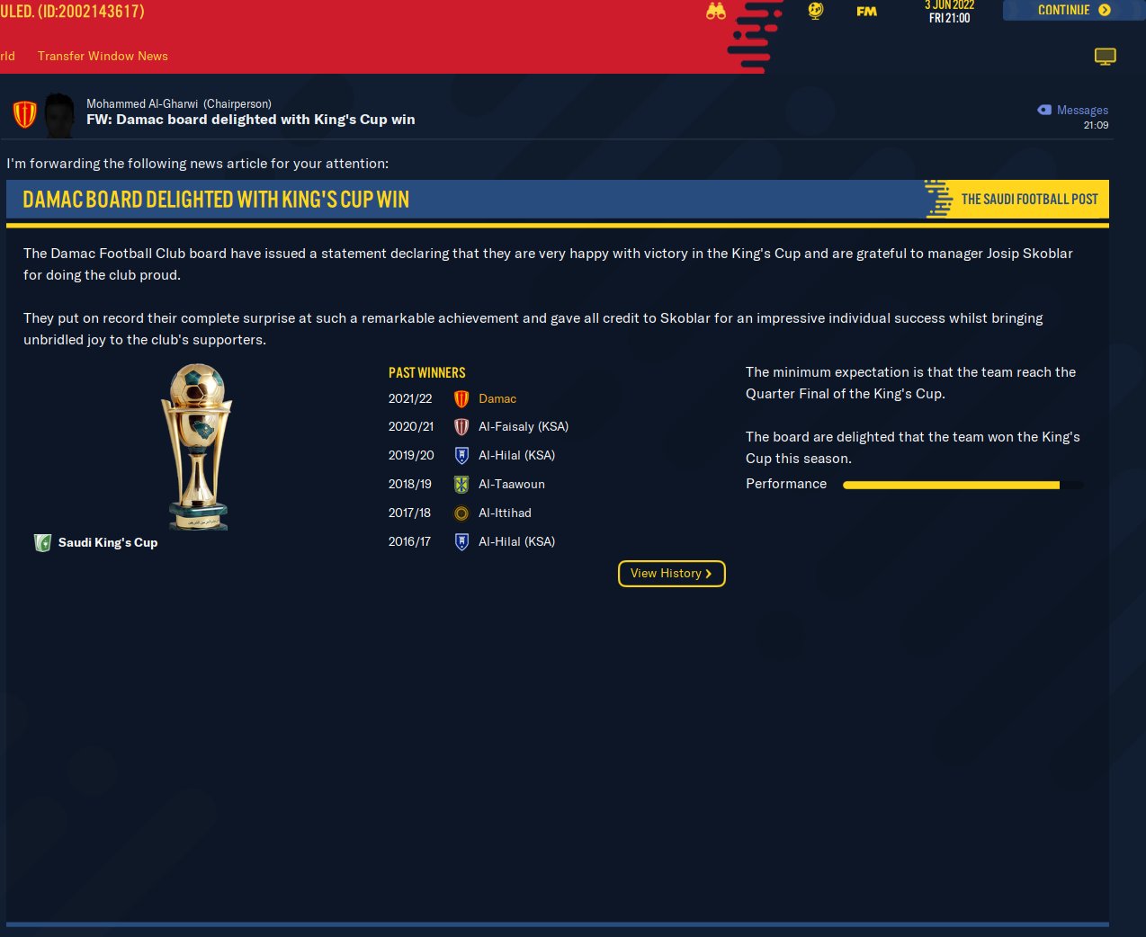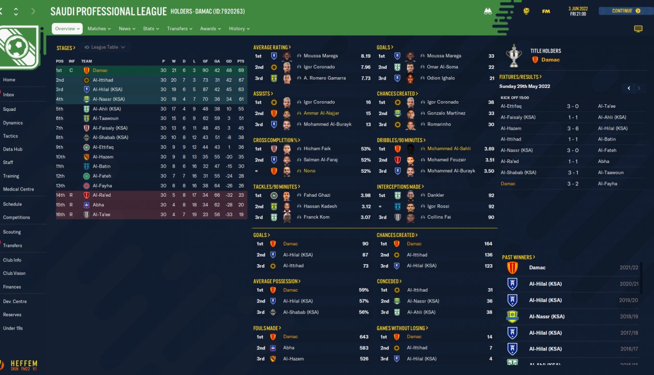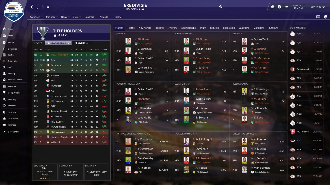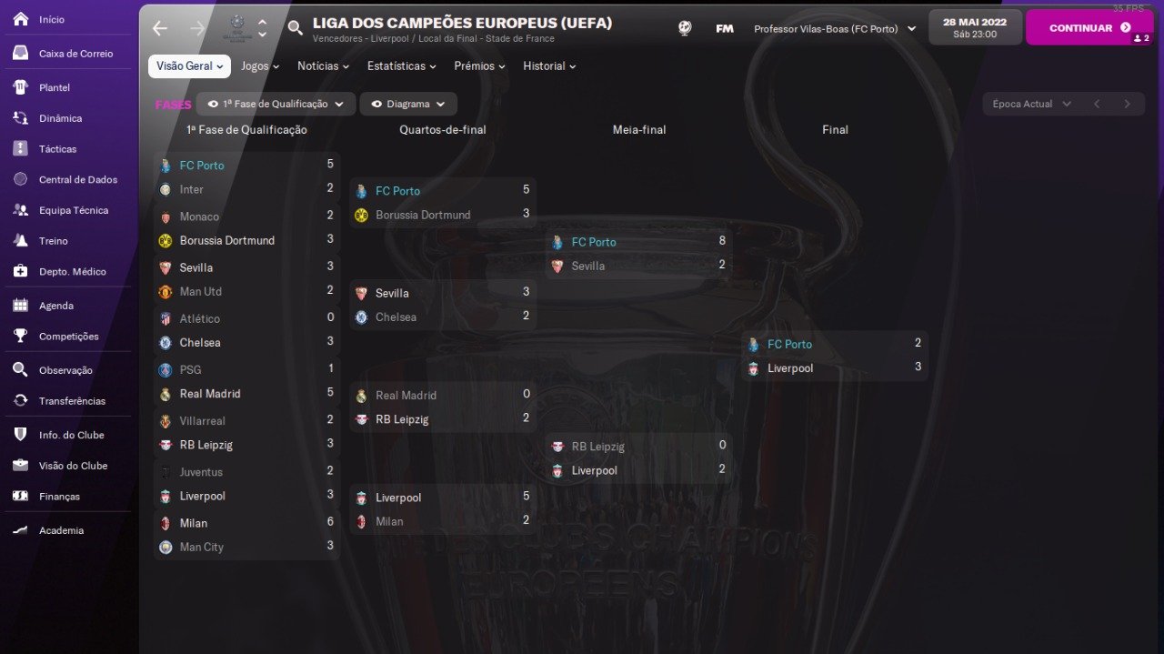 I will post the results we obtained until the season, which were good in the group with Bayern Munchen and Real Madrid and I still managed to finish first and reach the final of the champions final.