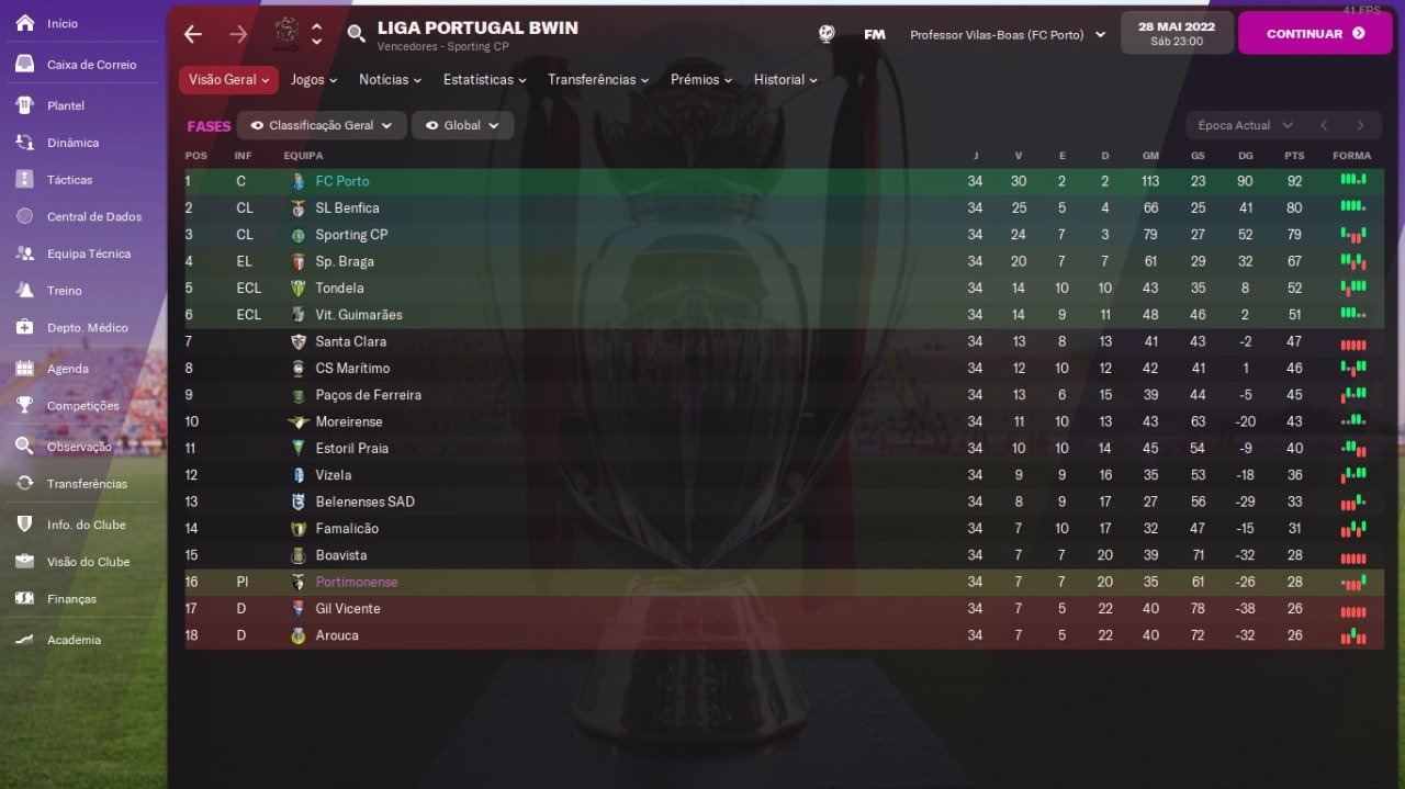 Results of a season played, with Porto, with the "Penetration Tactic" tactic