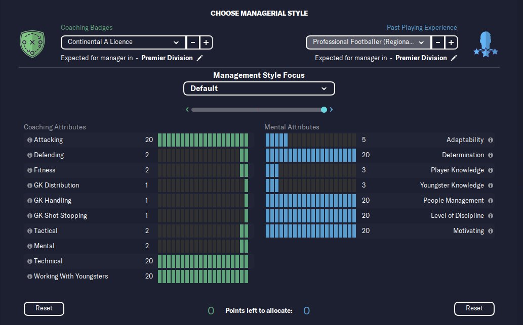 Below is the type of manager I expect you to be. - Determination: Get what you want from board. - People Management: Increase morale with praise / warn. - Level Discipline: Less unhappy players. - Motivating: Team talks and shouts. - Training: Any 5 star and Working With Youngsters.