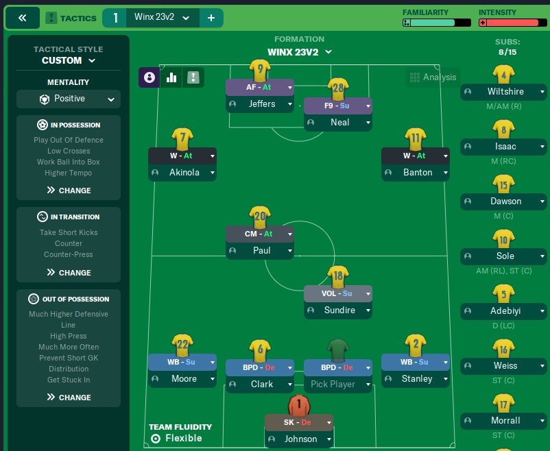 I have improved upon my tactic from last year which tested well in my Beta tests. This one is definitely better. The offset midfield seems to work and bringing in a Vol for RPM at DM seems to work.