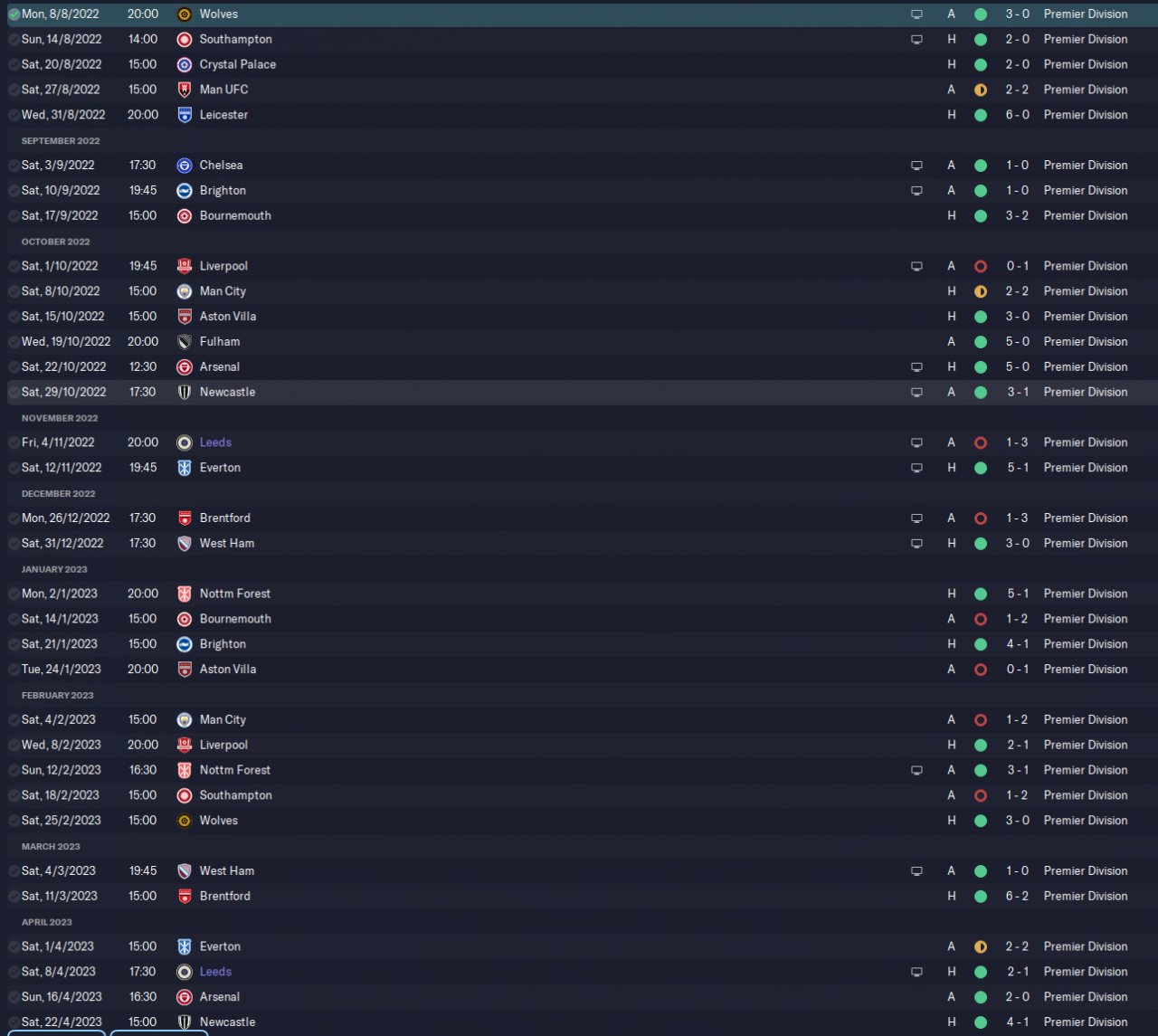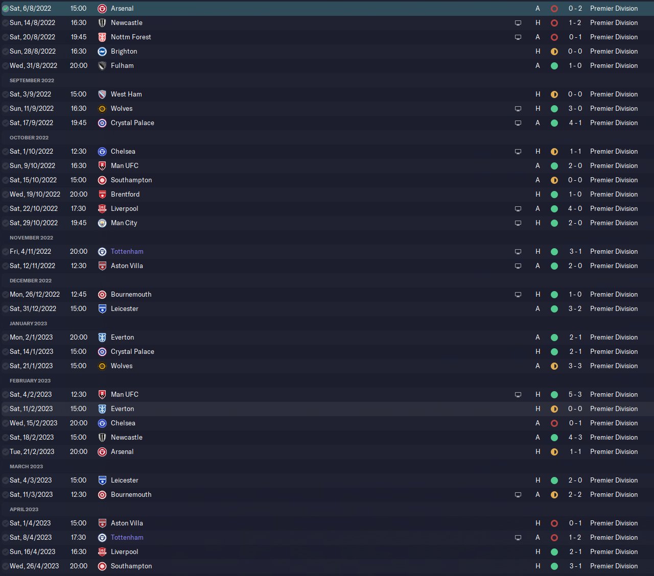 Tested with Tottenham and Leeds in the same season, holiday test.