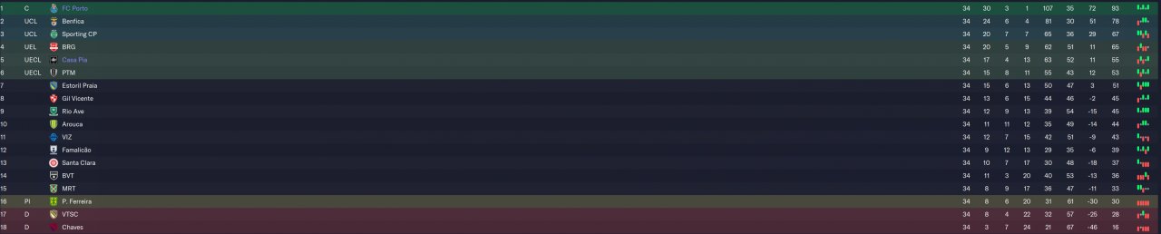 Tested with 2 teams Porto and Casa Pia, Porto won the the league by a large difference and casa pia was supposed to finish in 10th place it finished in 5th place.