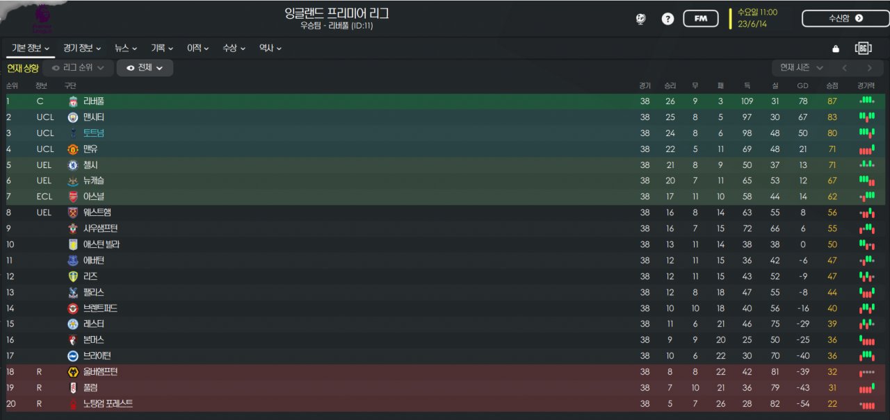 I finished third place in the Premier League with 80 points, and I scored 98 Premier League goals and got the second scorer in the league. (Harry Kane scores 70 goals in 55 games.. wow)