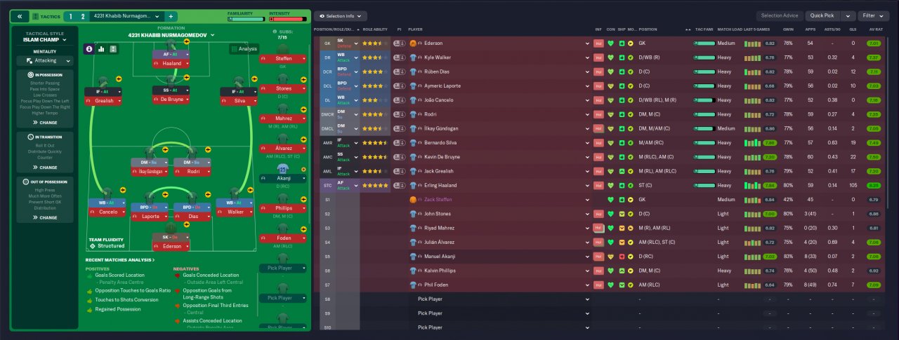 The change is about just putting into consideration every test were made and basically now i am putting logic over the game it self(i know it sound crazy) 4231 positive,is just based on my thoughts,but if same tactic on positive is 53 focus play down on, but there is no "stuck-in" now the real question would be what's the total point if we put the same tactic but on positive? (We don't know, but we can supposed or is 53 around 54,because if we check 4231 Nurmagomedov it did score 53 and we added : Overlap;Run at Defence; and Focus play down... So we can say after all of this we can say that something is giving -1 (for me run at defence is -1) Now the question is about overlap and focus play down... But we know from the bible that overlap is doing "negative" impact then positive but we don't know "how much" , the only thing we don't know if that focus play down is really doing something or not.. So i am just guessing that to put FPD is a better bet,maybe is doing nothing for real or it's giving -1 let's see..