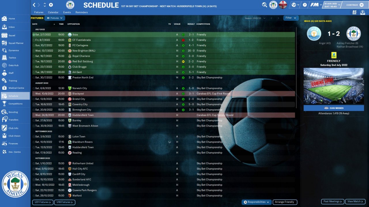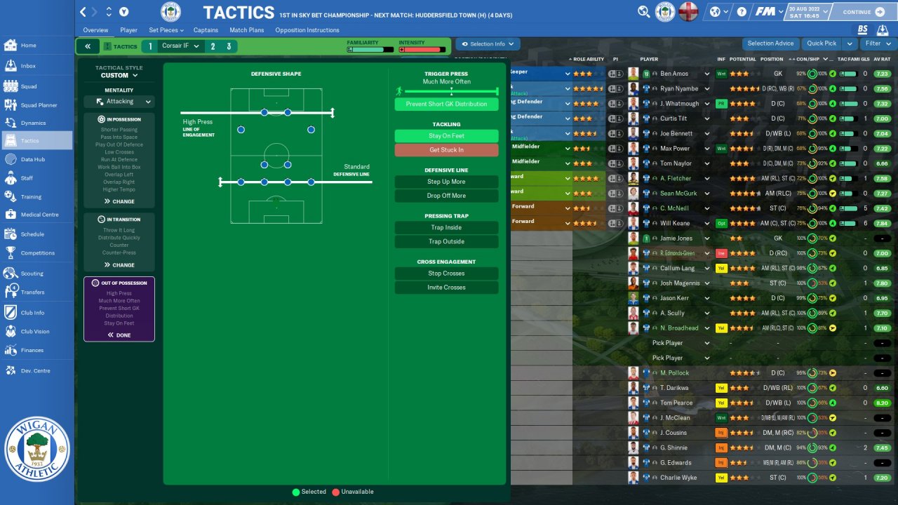 I play Wigan and suppose to finish bottom. My player got so many injuries during pre-season matches so i tick stay on feet and it work so amazing! Much less red and yellow card, injurie less, and win more!