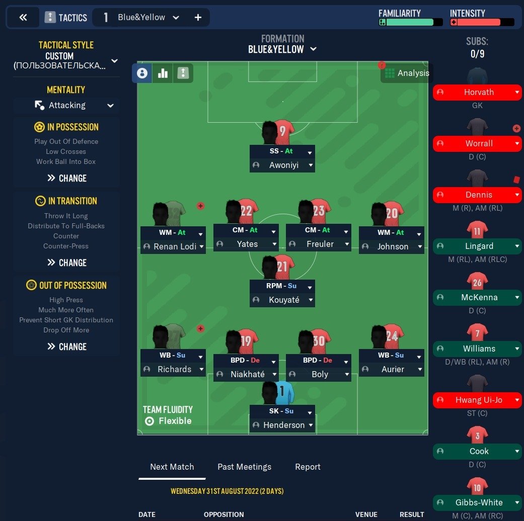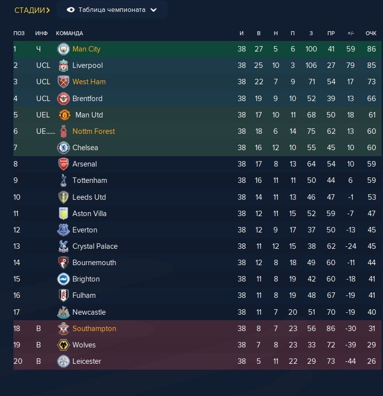 Hello everyone, I want to share my tactic, which in the first season for Nottingham Forest achieved an incredible result without transfers - namely, 6th place and access to the Europa League.