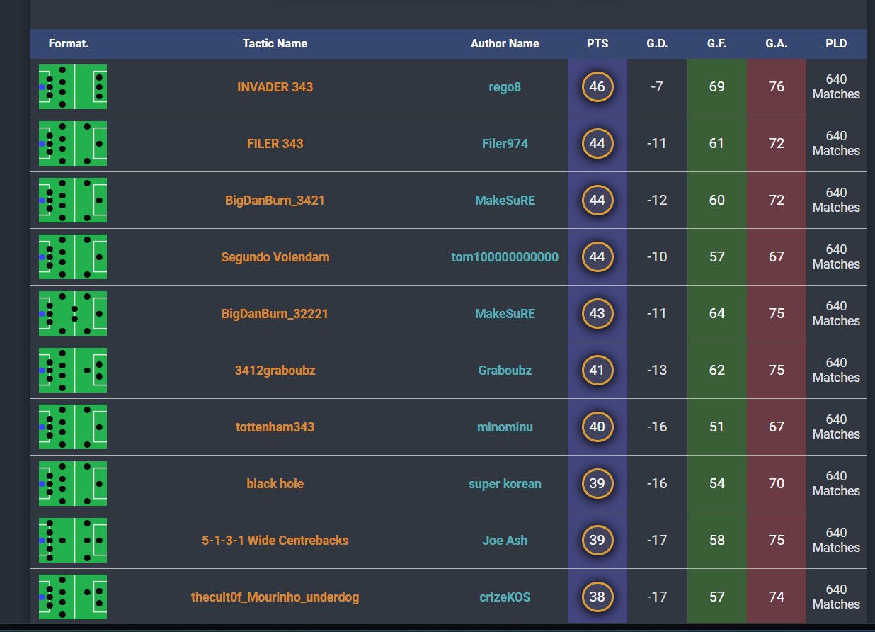 Number 2 in the ranking of tactics has 3 defenders... It's not bad but I think we can do much better....