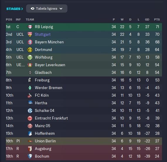 The results are solid. In my test Stuttgart got 2nd. My focus was on defense and getting good looking, realistic football. I feel that 6-3, 7-2 results all the time are not very immersive.