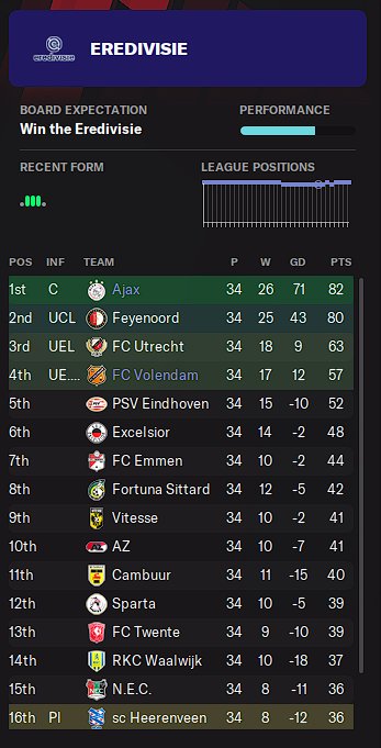 Volendam (predicted last) finished 4th