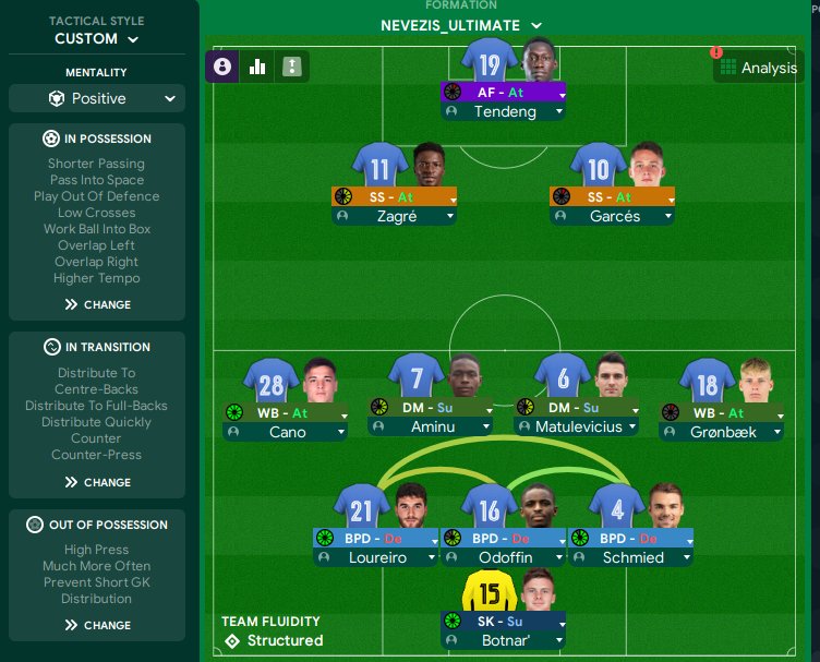 - Keep pressing with 3 at the top which are all strikers as well so a lot of verticality (in 23.2 update double-AM tactics were buffed in and out of possession).