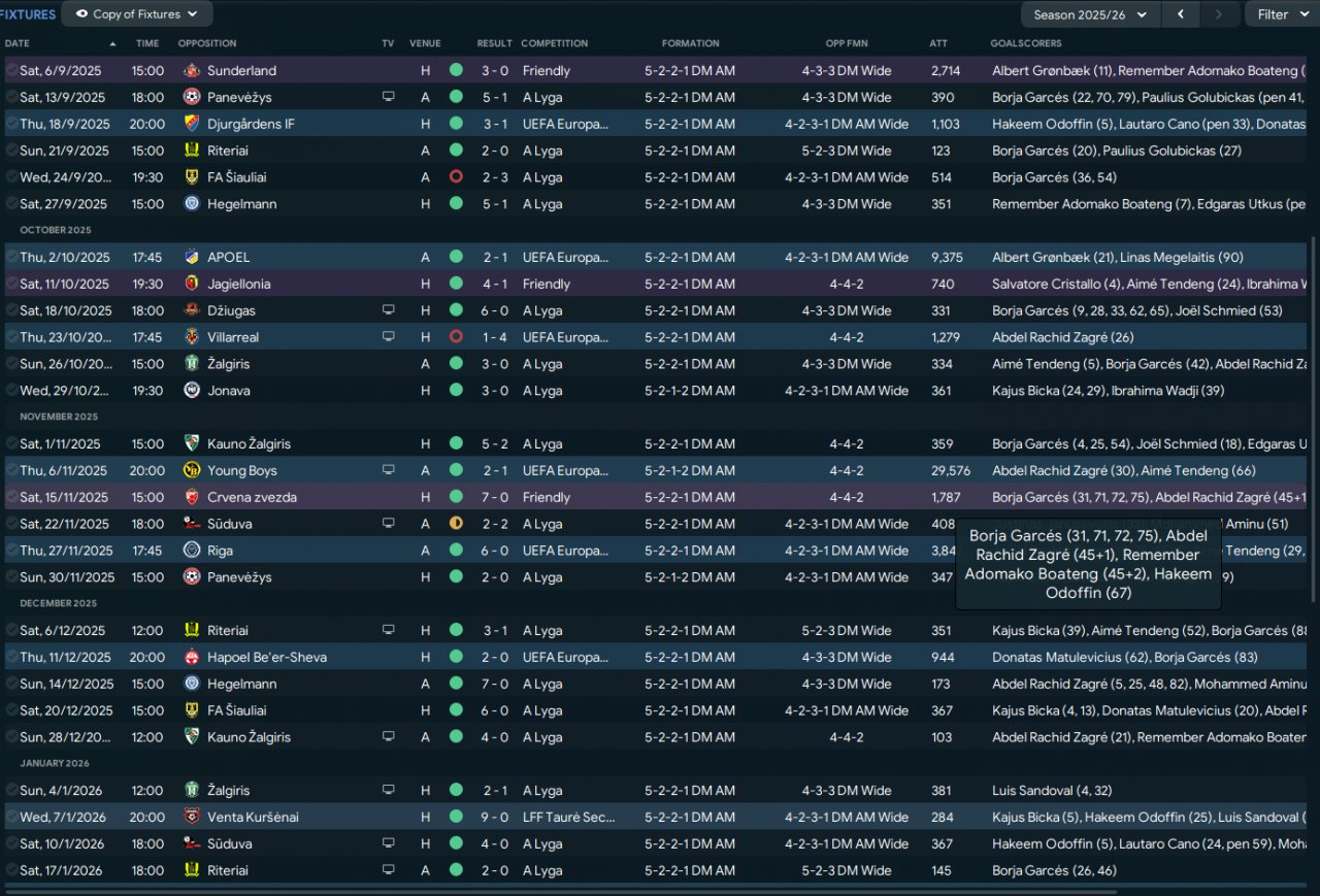Great results in my local save where this year I am expected to win a title in league, but big underdog in European competitions (only 2 star reputation club) where so far only lost 1 game and beat regularly 3-3.5 star reputation teams: