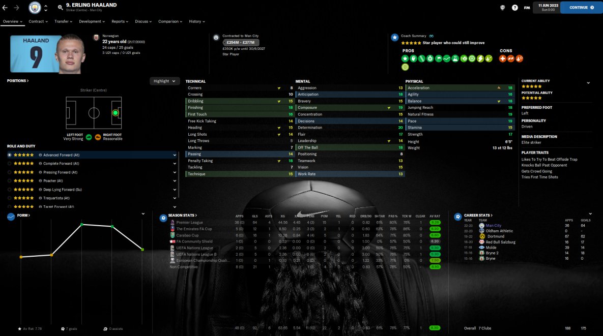 Won everything with City, I know its an OP team with a cheat code up front, speaking of that cheat code he scored 110 goals in all comps