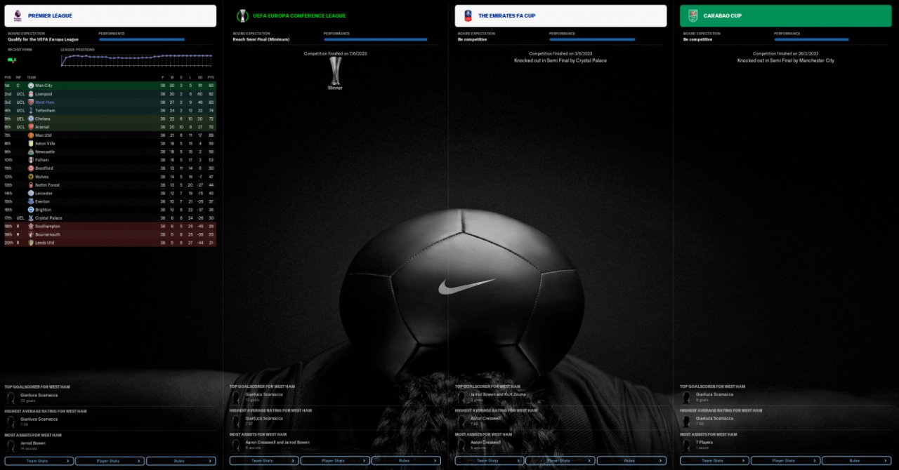 Finished 3rd in the league and won Europa conference league, Scamacca top scored with 53 goals