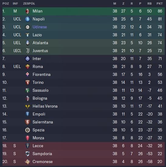 In my test Udine finished 3rd, which is outstanding and should match the results I got using Corsair tactic although you will score less but concede less as well.