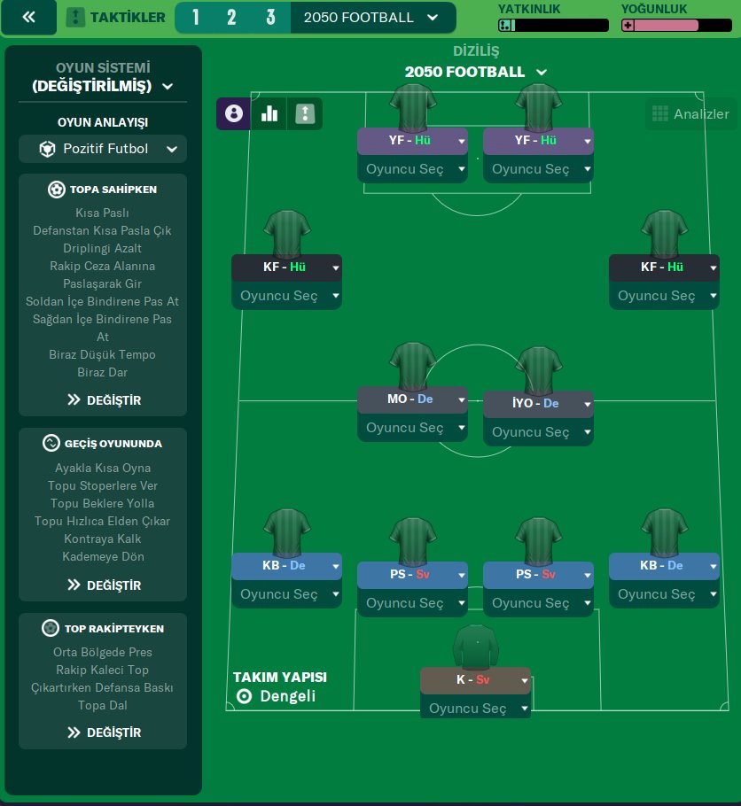 The aim of the tactic is to pass and score goals. You do not get tired by pressing. Only our 2 most forward players are pressing. This is sufficient. The remaining players should have good positioning ability.