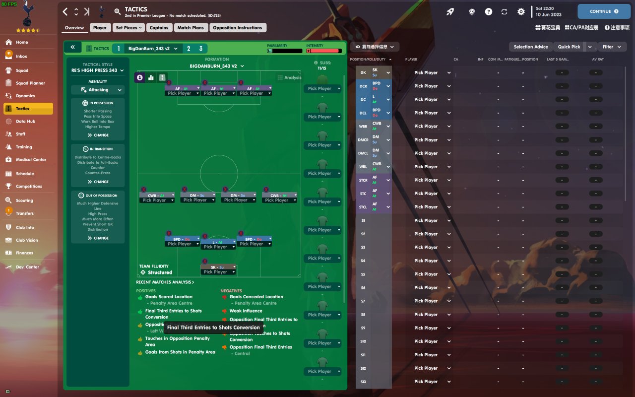 This tactic got excellent results in custom testing league so I just gave a holiday test on it with Tottenham. Result ended with avg. 3 exG and 1 exGA in Premier League.