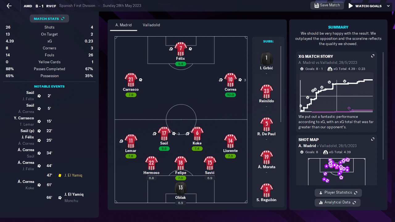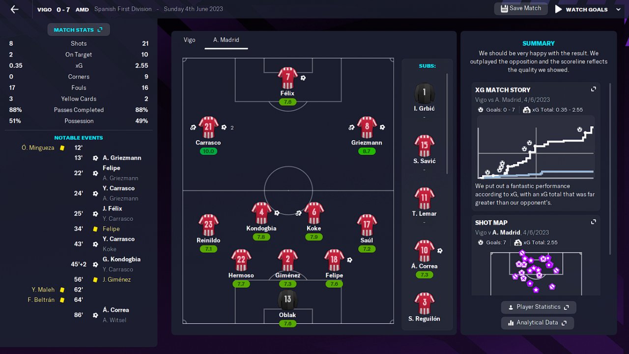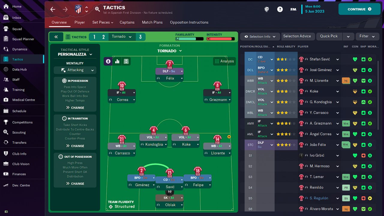 Hi everyone, I want to share with you this tactic that won me La Liga in the first season with Atletico Madrid, scoring 119 goals and conceding just 28. I hope it works for you as it worked for me.