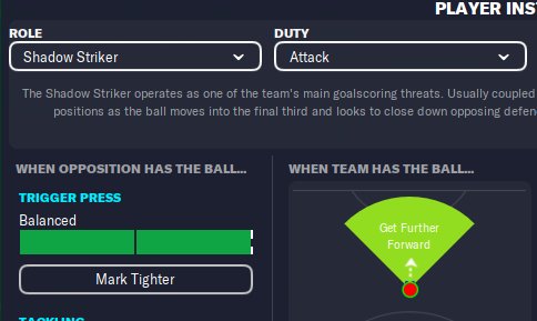 - I've this friend of mine that created a custom tactic league (nothing compared with the job ur guys are doing here). Today he ran some tests that I asked him and the only thing that managed to improve Xmas_twkd3 was a Trequartista in the SS place. For that reason I'm asking u guys to test this to be able to ratify the tests we ran in the last hours and the fact that shadows strikers are hugely nerfed in FM23. @MemorizableUsername notice that too, if im not mistaken. That something that feels weird in wide diamond tactics, and is the SS role.