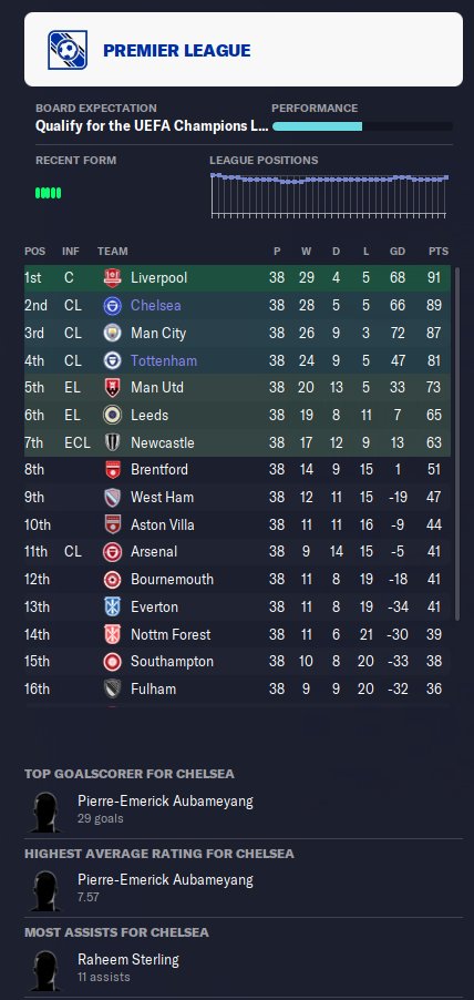 - I tried a holiday run with Chelsea and this time the role was able to perform rly good, being the best position of the season.