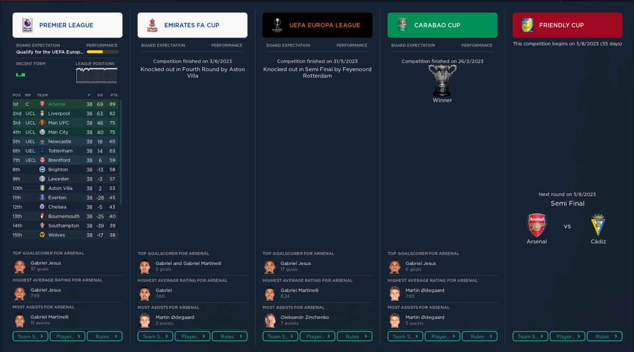 Holiday'd whole season and won the epl as Arsenal but unfortunately got knocked out in Europa League.