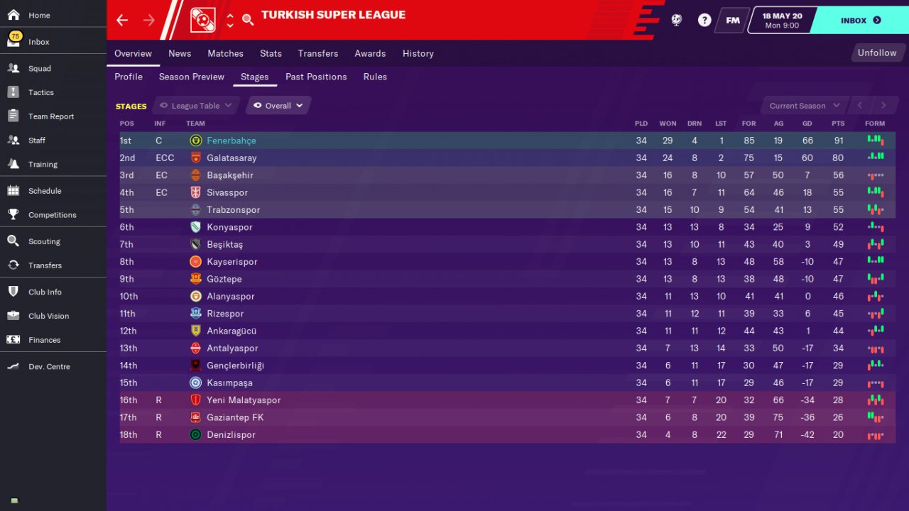Bvb and Fenerbahçe win German league and Turkish League. Mainz 3.rd place on bundesliga.