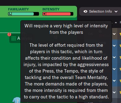 If look at the top tactics from our tactic testing then you'll see that they all have the "Intensity" almost at the maximum.