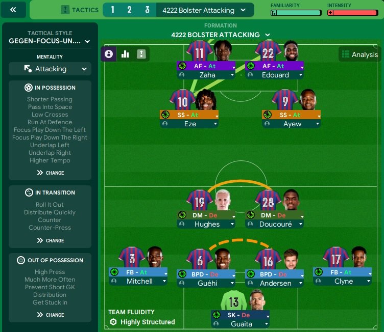 Trying another sans AML/AMR, focusing on defense, SS to link the midfield, AF's stay wider.