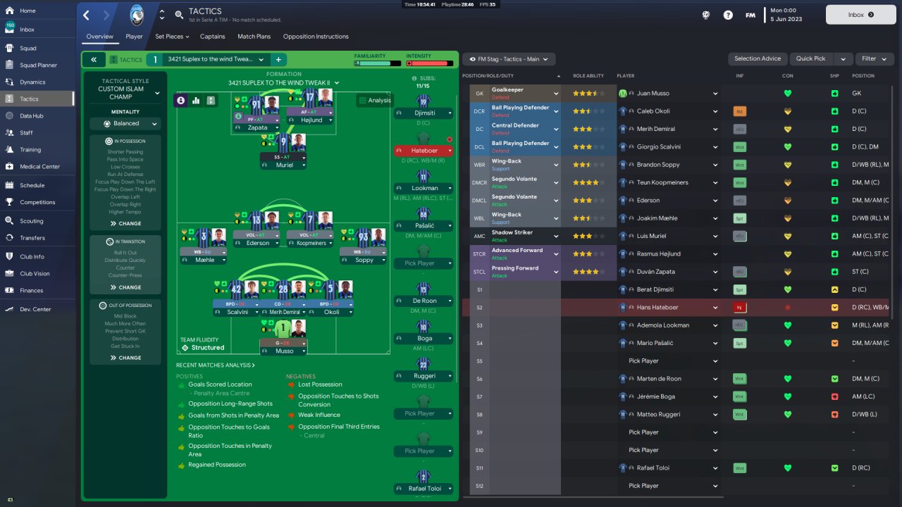 I added a shadow striker and changed some roles and instructions in midfield and defence