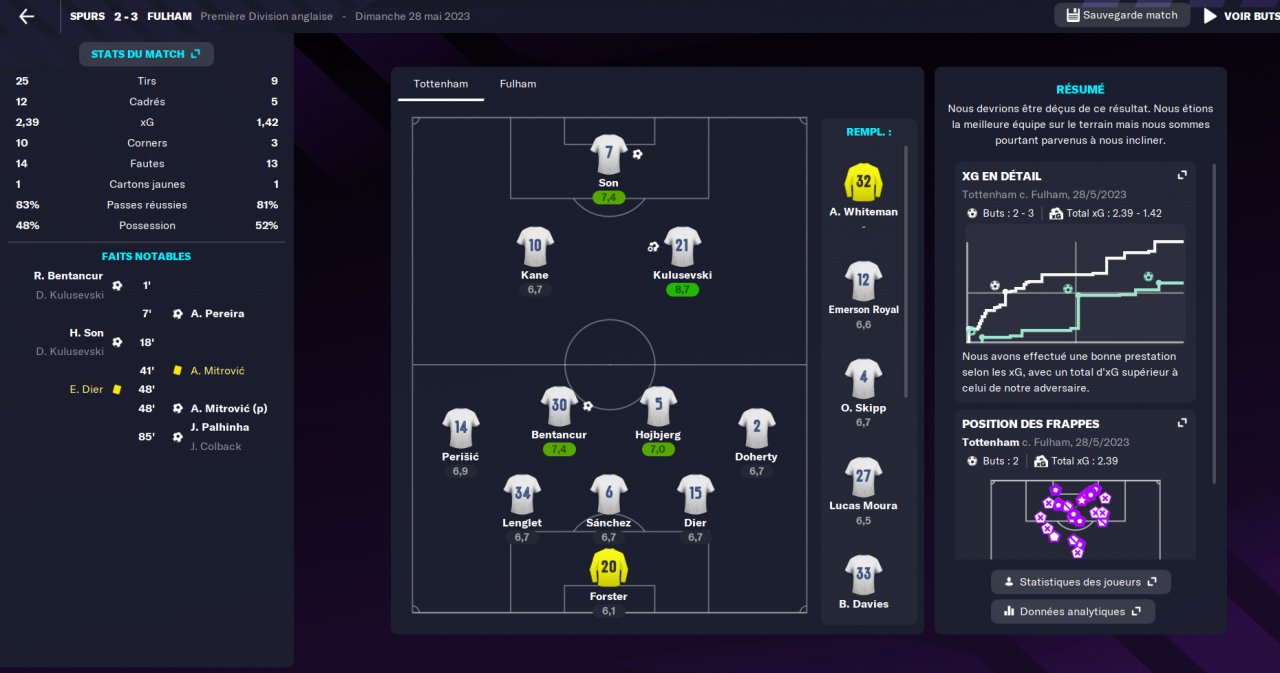 I tried the volante in sup but the results are less good, I had 76 points with Totenham, there I try the volante in sup and the WB in att