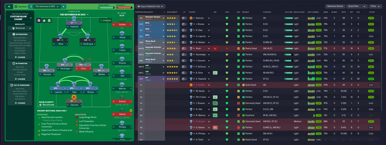 It is a tweak of 343 The notorious but in 3421 mode. I could have been champions if I didn't lose the last game against Fulham. I finish the season with 84 points in holiday test