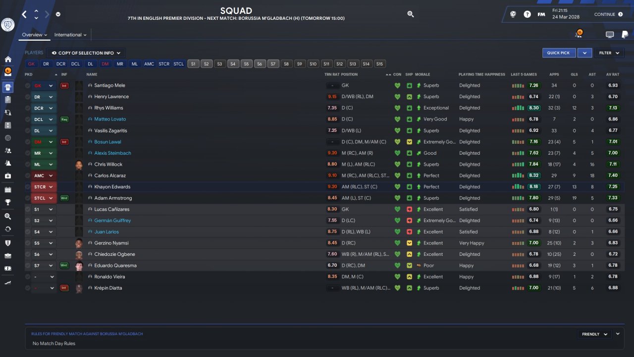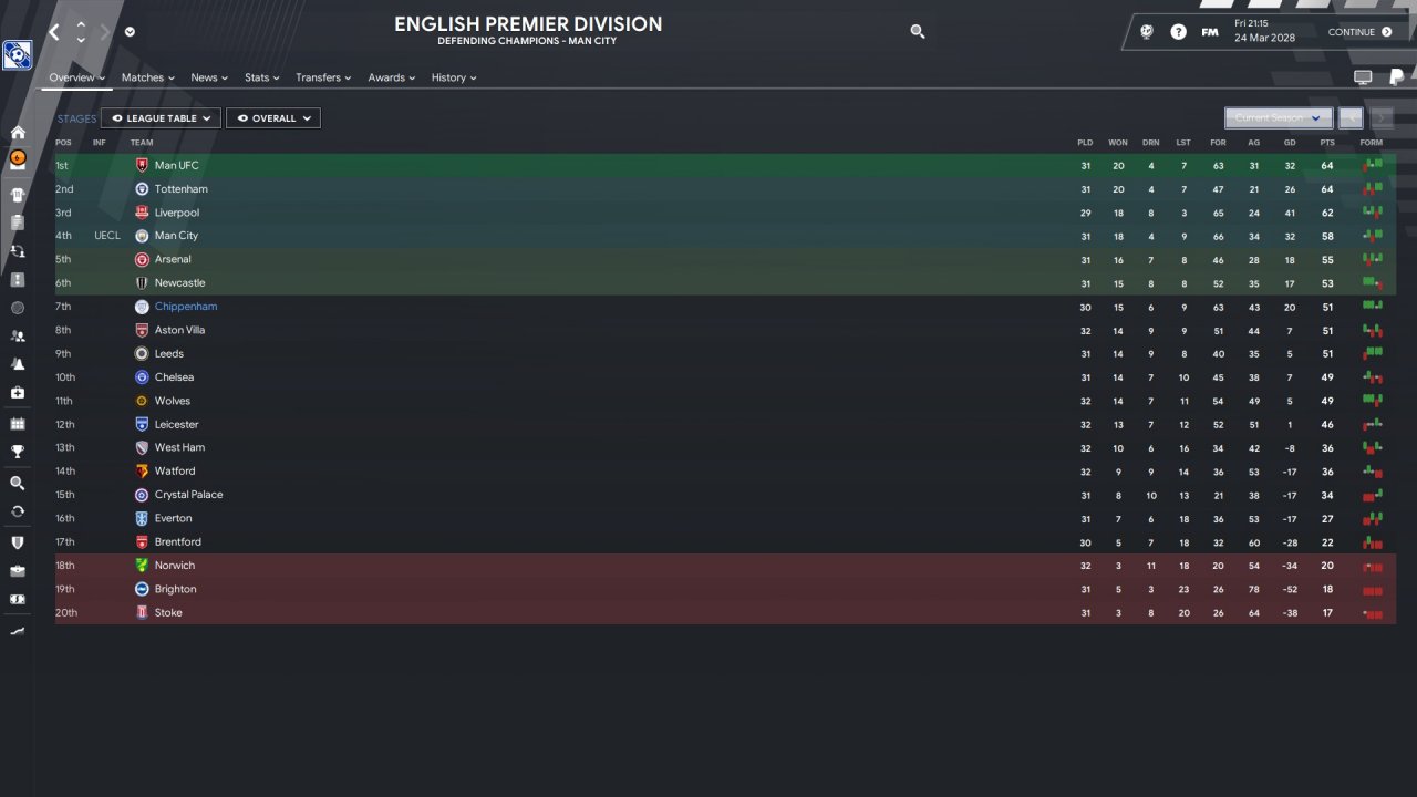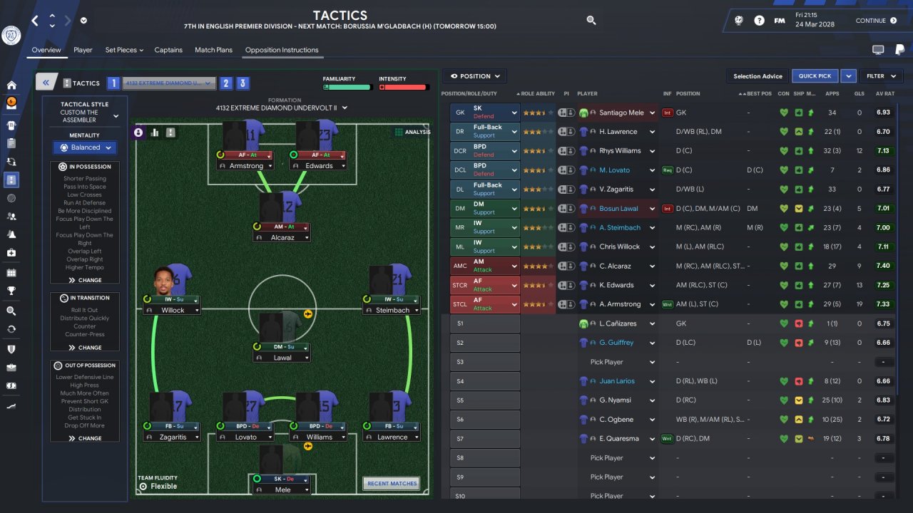 Great tactic Randomized team selection until first national league south or north team came up Premier League ongoing. In championship i played the first 10 - 15 games with your two volante tactic. Got a bunch of draws. Also didn't help that i changed 90% of the team. My expectation was that i would easily bossed the league the same way as the previous years, although i knew that it would be much harder to win , i didn't expect it to be this hard .