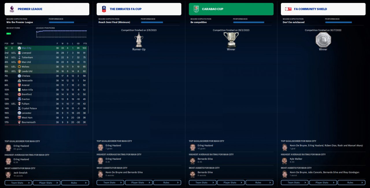 A 451 that won the quadruple, Haaland top scored with 103 goals in all comps. Only 2 defeats all season, 1 in the league away to Spurs and losing the FA cup Final.