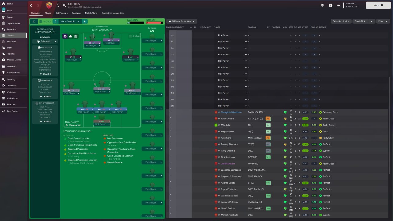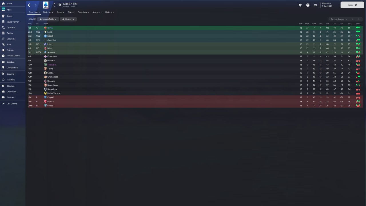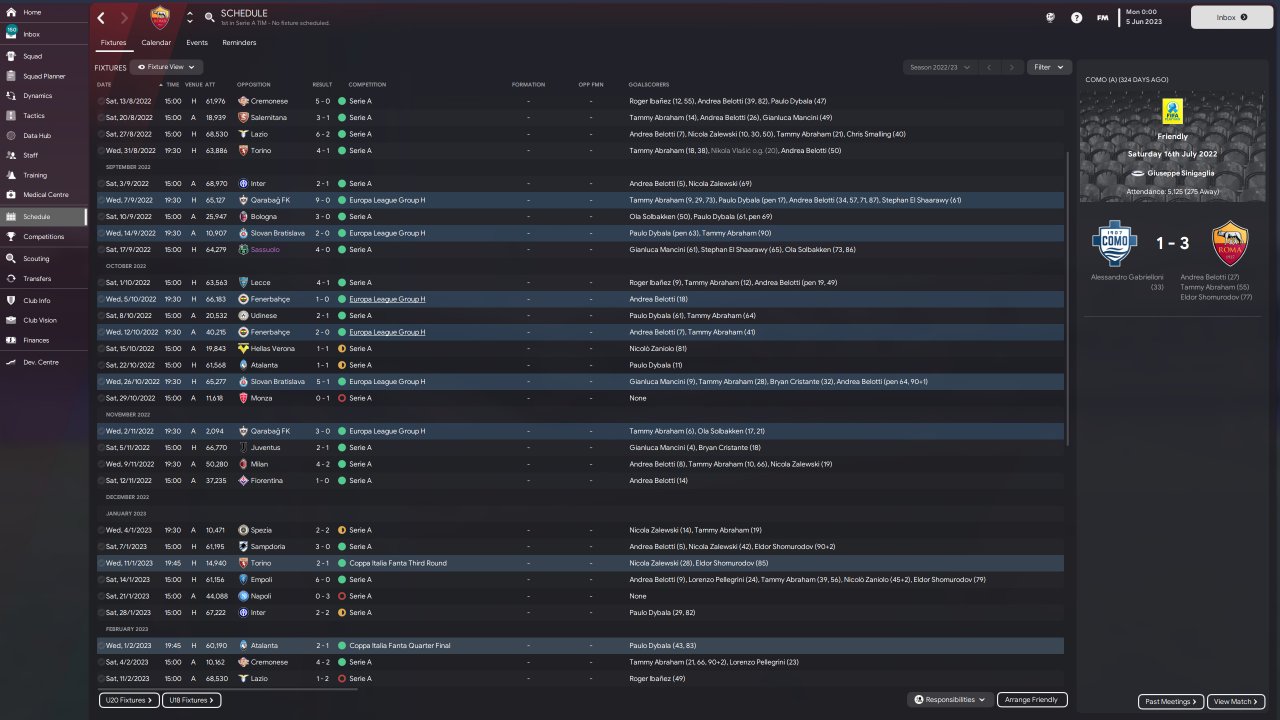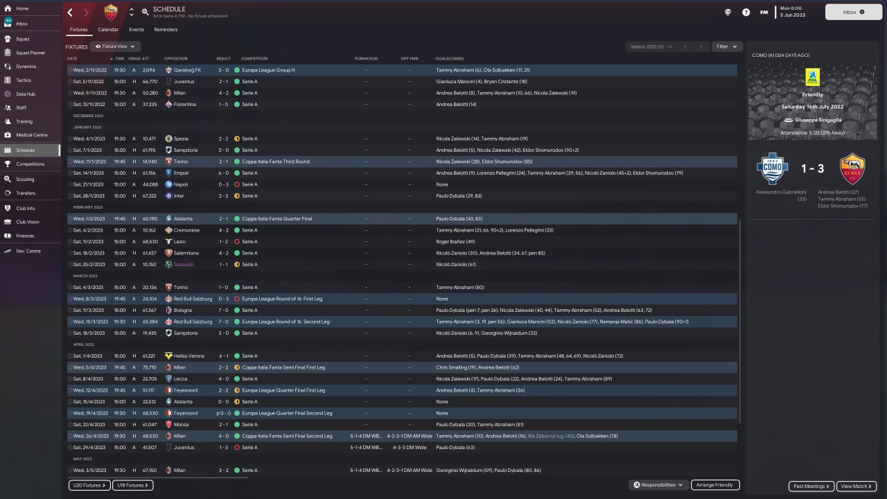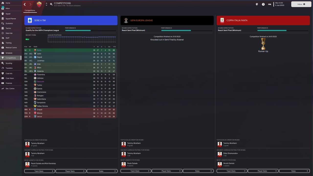 Amazing results with AS Roma in first season without transfers + whole season on holidays !