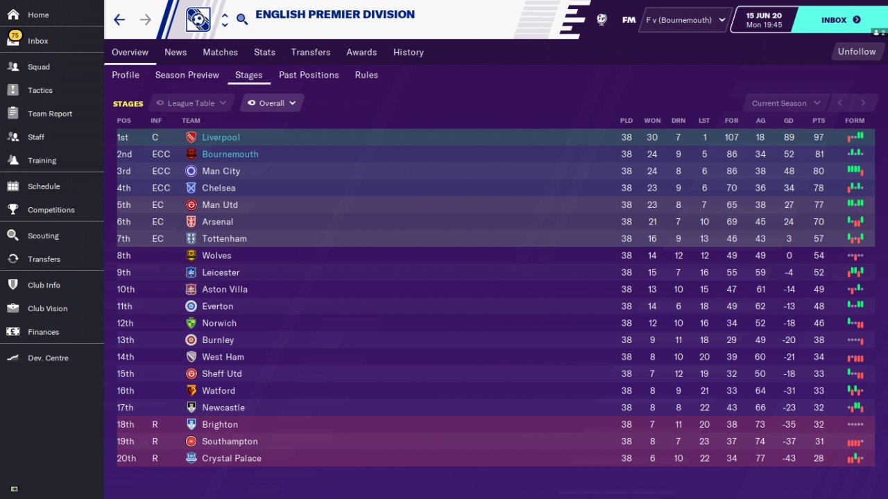 First season no transfer. Test teams Bournemouth and liverpool.