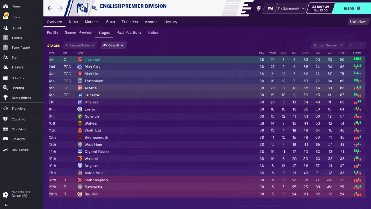 Liverpool win premier league.