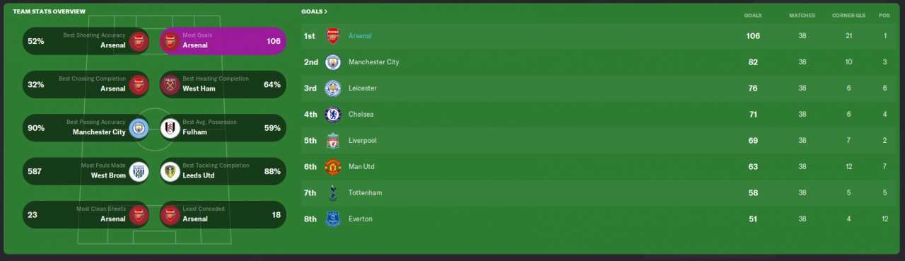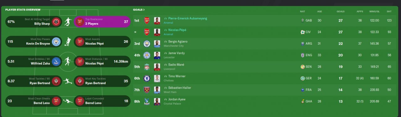The right Winger (Pepe) did really well in the Prem he scored 27 and assisted 26 (to be noted he was on set pieces) while averaging an 8.12.