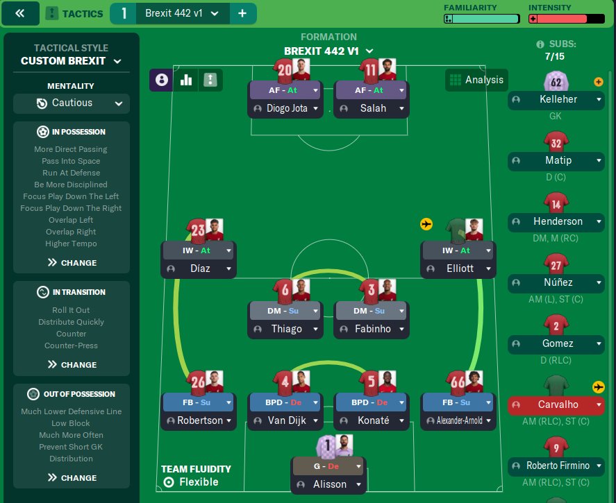 Long ball style 442. Low block and much lower d-line. Oddly enough it seemed to perform better in my tests with some of the pressing instructions still on. So I kept prevent short GK distribution, counterpress, etc. Definitely not the meta but still interesting to see how it does. 39% average possession