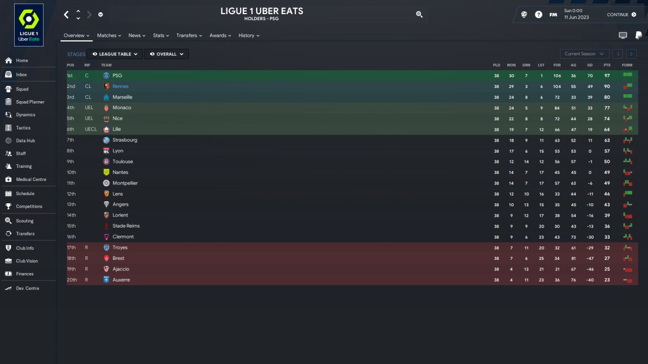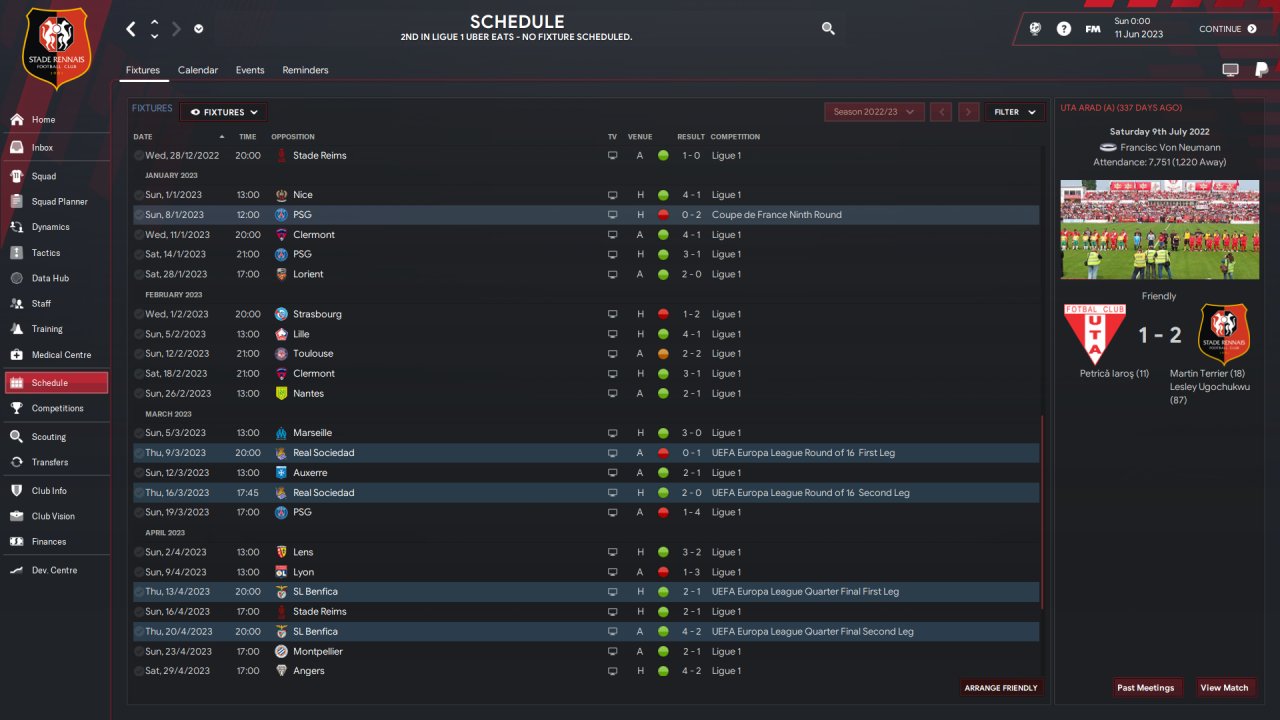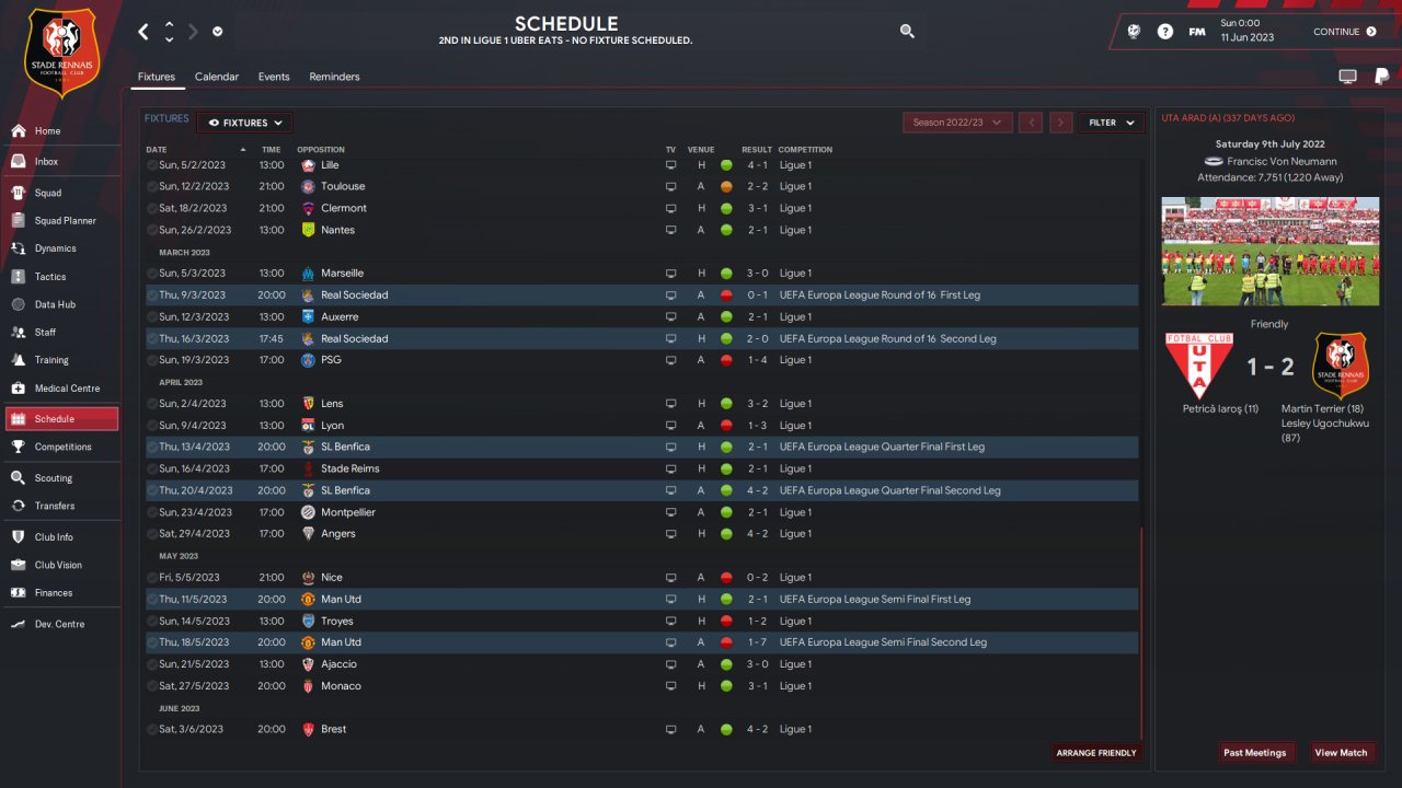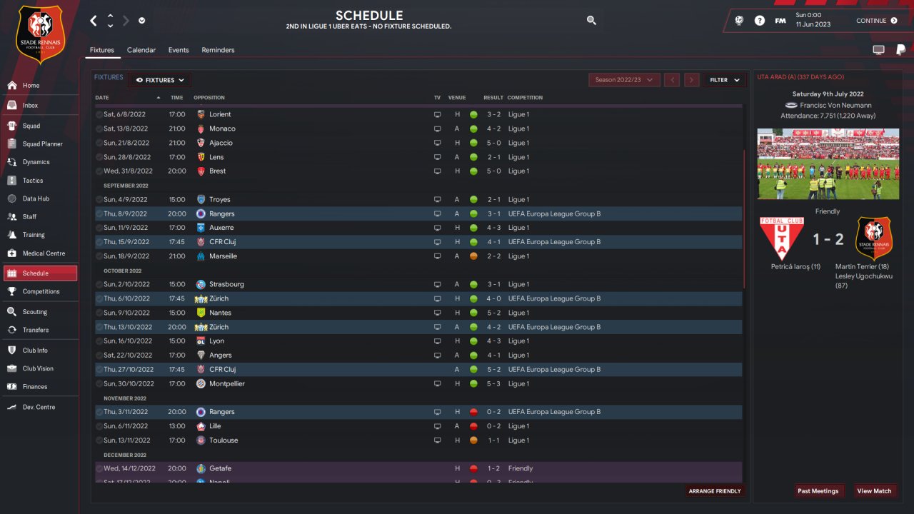 I have tested with three teams that you can see in the video but for the purposes of FM-Arena I will show you the results of the test using Rennes: