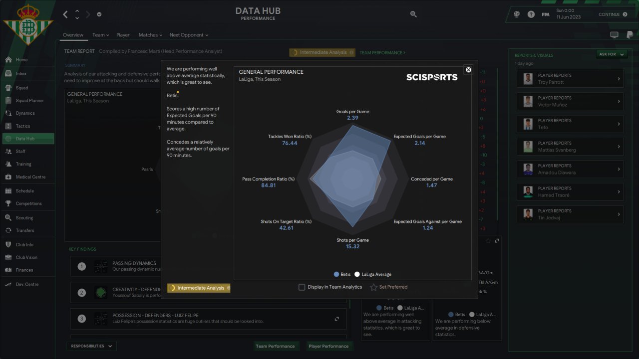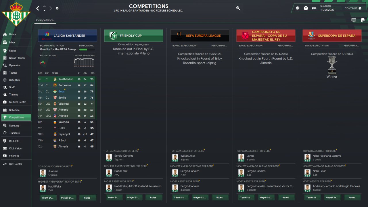 Real Betis - Preview: 9th - Finished 3rd - 35 GD - 84.81 pass completion rate.