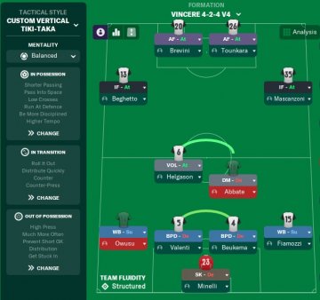 This is version 4 of my 4-2-4 tactic. I tested it out on my own save I was playing. I managed serie c team Cesena and was aiming for a top half finish. I lost 2 games and drew 2 games in all competitions all coming in the league where I finished on 104 points scoring 107 and conceding only 23. On top of the league title I also won the Coppa Italia Lega Pro and the C super cup.