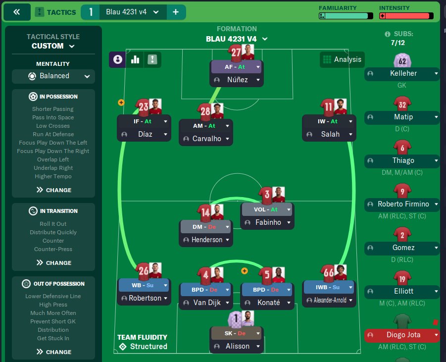 Asymmetrical 4231 which was tested on the new patch. I did not offset the striker and used an IW so it could stay wider. Trying a mix of different roles like DM-D, IWB, AM-A. Normal meta instructions and set pieces.