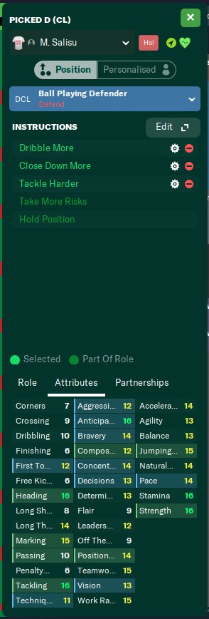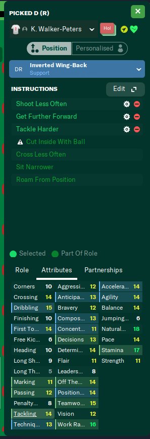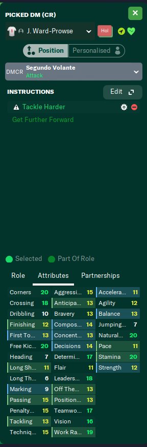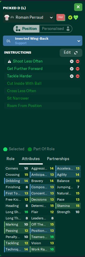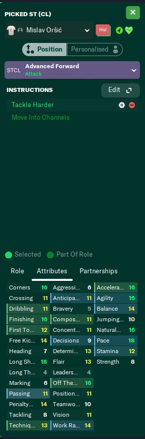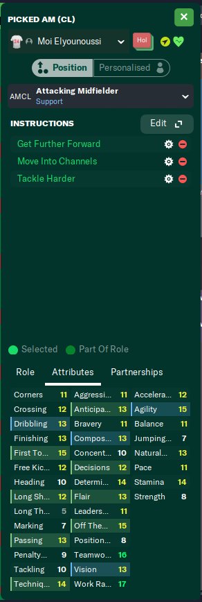 With instructions to still stay narow but to run and try to cross more often from deep as oportunity arrives,plus I added him to mark tight because often oposition IF get too much space to operate