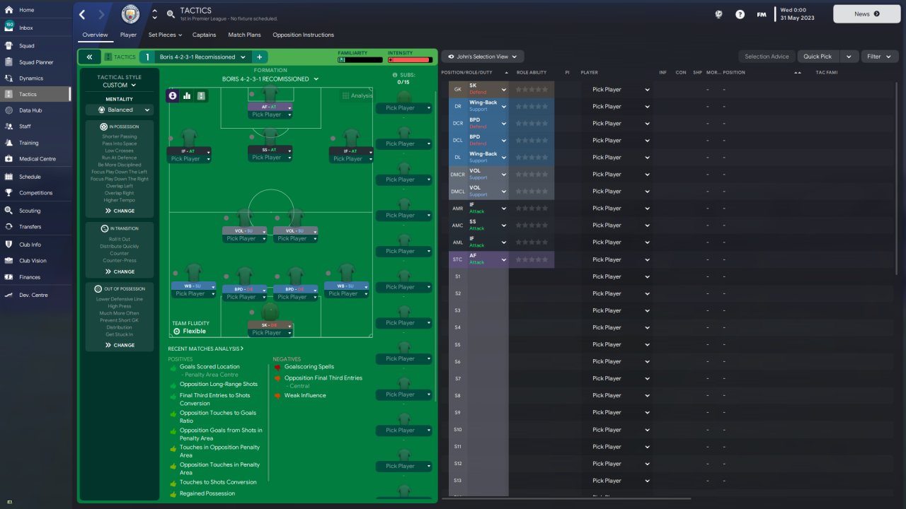 Hi, thought I'd try another 4-2-3-1. This time adding some new instructions as well as importing set-pieces from Delicious. Did very well with City in the league but not great in the cups.