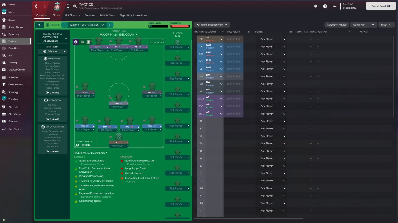 Put tackle harder on everyone possible. Cross from byline and get further forward on the DWs. Get further forward and shoot less often on the IWBs. Hold position on the DM. Dribble more on the CBs