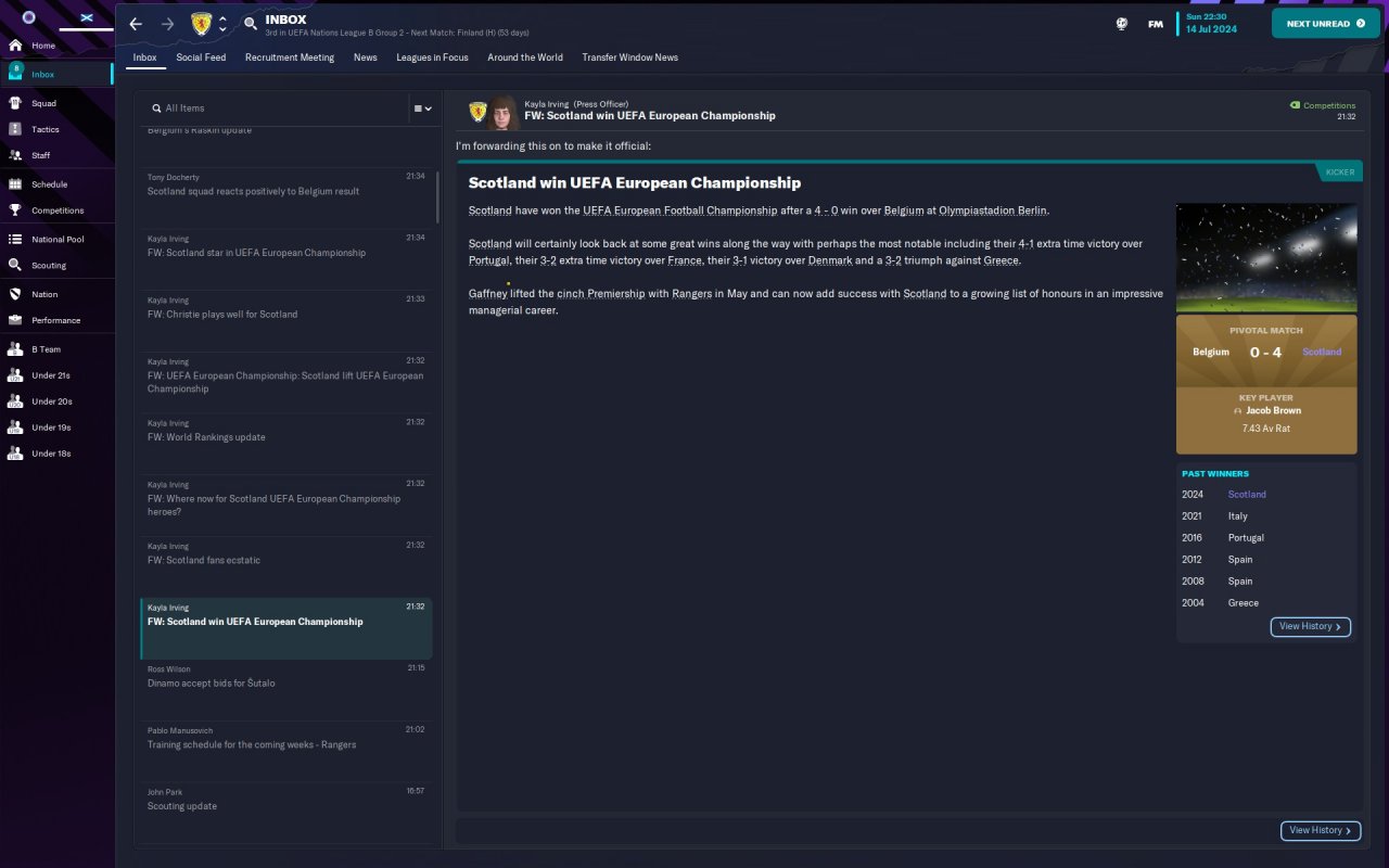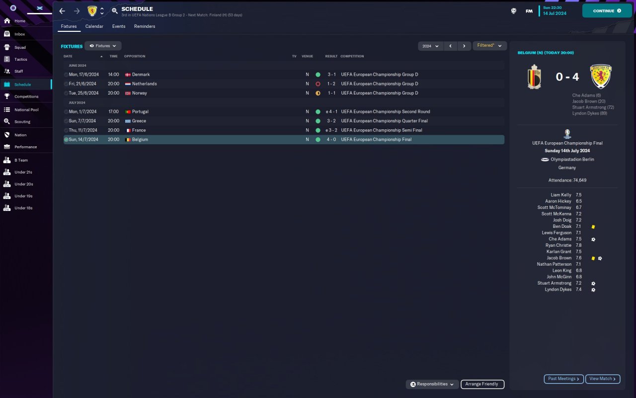 Won Euro 24 with Scotland! Got to the CL semis with Rangers as well. Excellent work.