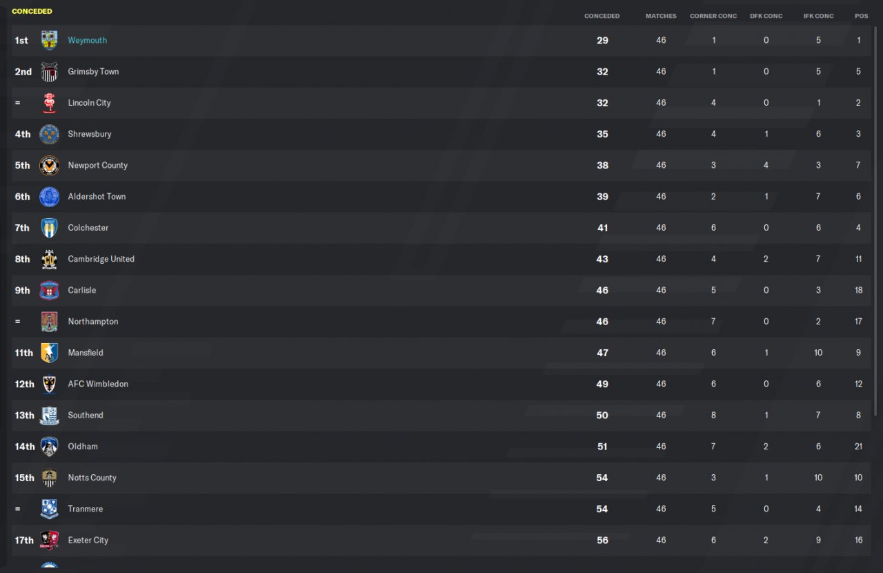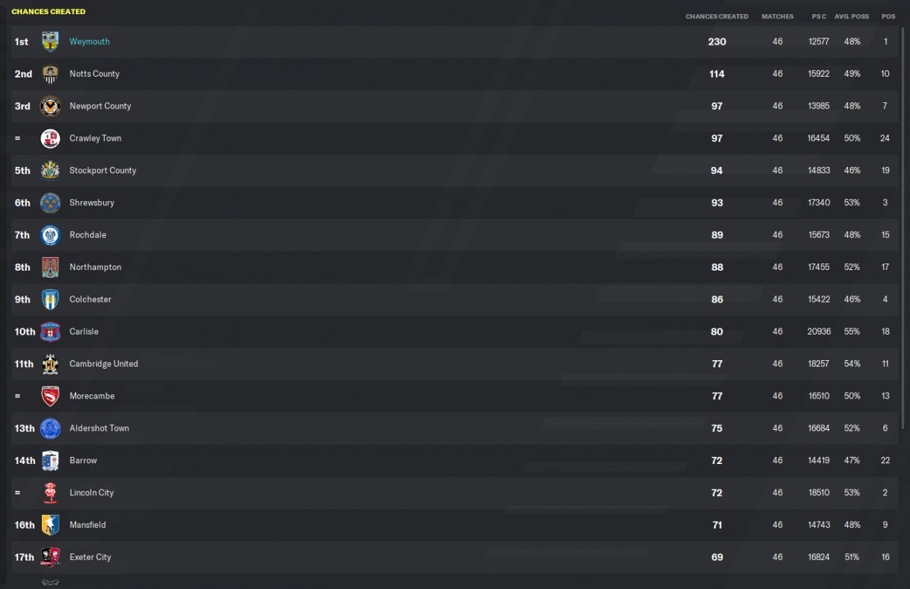 Had the most chances created, most goals scored and least conceded.