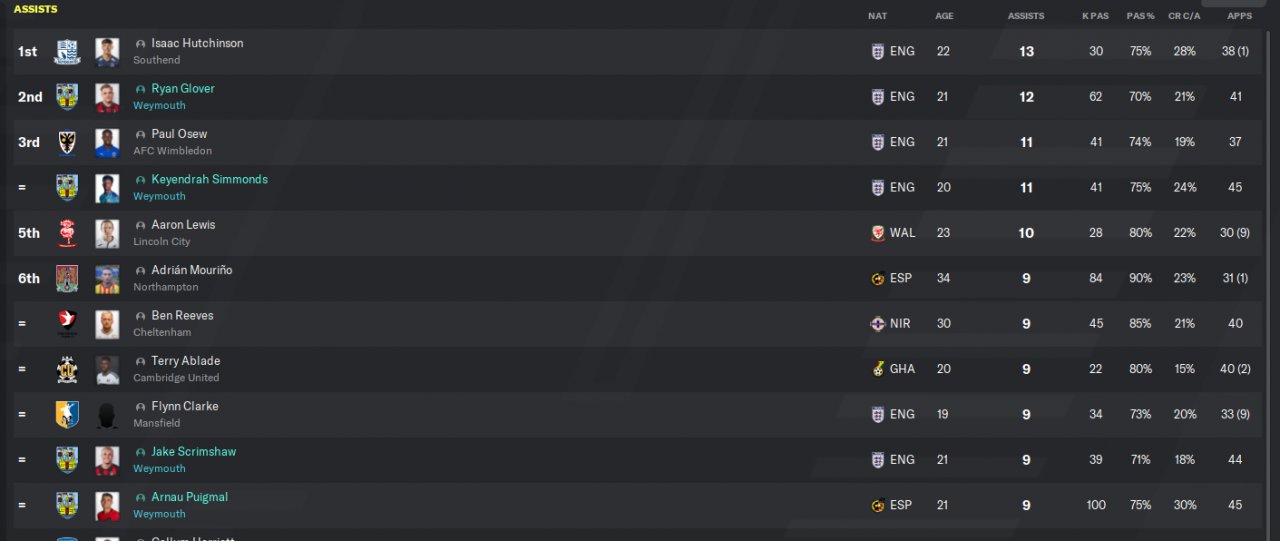 led me to win league two early with Weymouth.