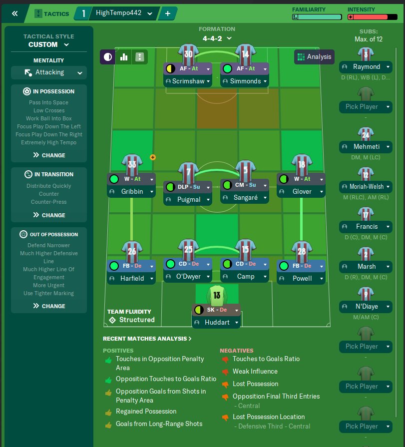 442 with extremely high tempo and focus play down left and right wing.