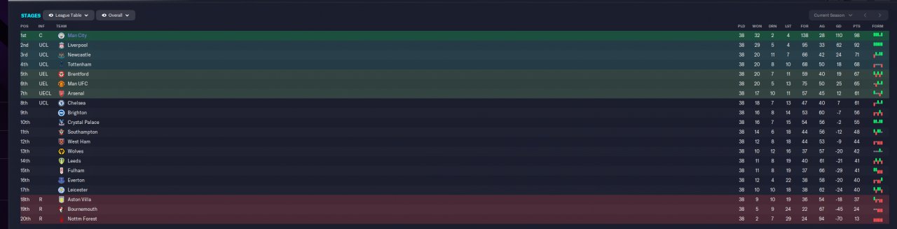 As can bee seen from the test above, FM is such RNG game that even if you test the same tactic for 5,760 matches then there still might be +/- 1-2 points RNG and not only the points fluctuate but also G.D./GF/GA fluctuate by 1-3 points too.